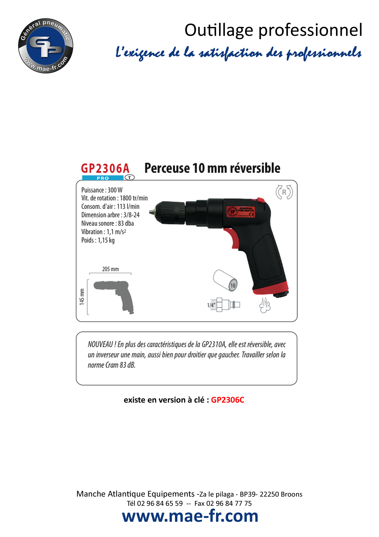 La fonction réversible de cet outil électroportatif offre une facilité de travail. Son niveau sonore est de 83 dba. La variation est évaluée à 1,1 mètre par seconde au carré. Sa pression de service est de 6,3 bar.