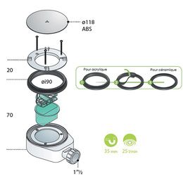 Bonde de douche ø90mm + grille ronde sortie verticale - GRANDSIRE FRIVILLE